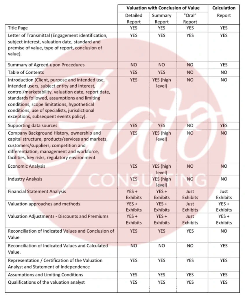 Types of Reports for a Valuation Engagement with a Conclusion of Value